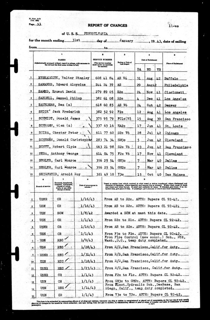 LeRoy trained at San Diego, spent fourteen months at the Pearl Harbor Naval Air Station, and transferred to NOB Midway in December 1943. He was 22.